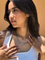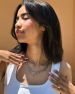 A powerful fusion of modern edge and cultural grace. This handcrafted necklace features a thick silver chain paired with a round brass charm engraved in elegant Arabic calligraphy. The contrast between the silver and brass centerpiece makes this piece deeply meaningful.