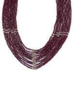A luxurious layered necklace featuring cascading strands of deep reddish-brown beads accented with metallic spacers for a touch of contrast and shine. Its bold, elegant design makes it a standout piece—perfect for special occasions or adding a sophisticated flair to everyday looks.