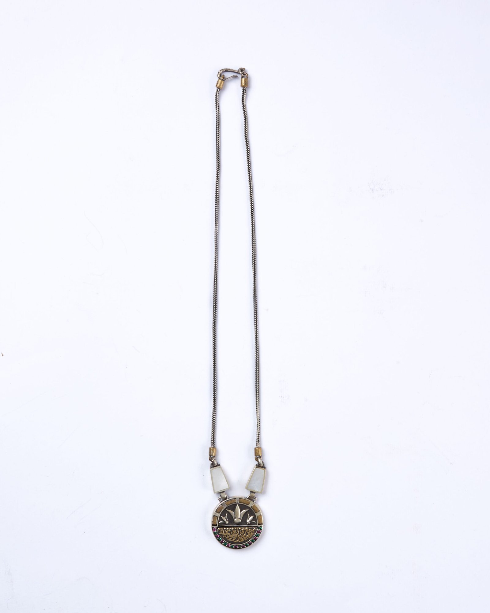A refined jewelry piece crafted from a blend of 925 sterling silver and brass, offering a unique balance of elegance and character. The contrast between the metals adds visual interest and sophistication, making it perfect for both everyday wear and special occasions.