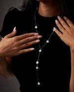 قطعة مجوهرات أنيقة مصنوعة بالكامل من فضة استرلينية عيار 925، بتصميم بسيط وراقٍ يضفي لمسة من الفخامة الكلاسيكية. بفضل جودة الخامة ولمعانها الطبيعي، تعد هذه القطعة مثالية للإطلالات اليومية أو كهديّة تدوم بقيمتها وجماله